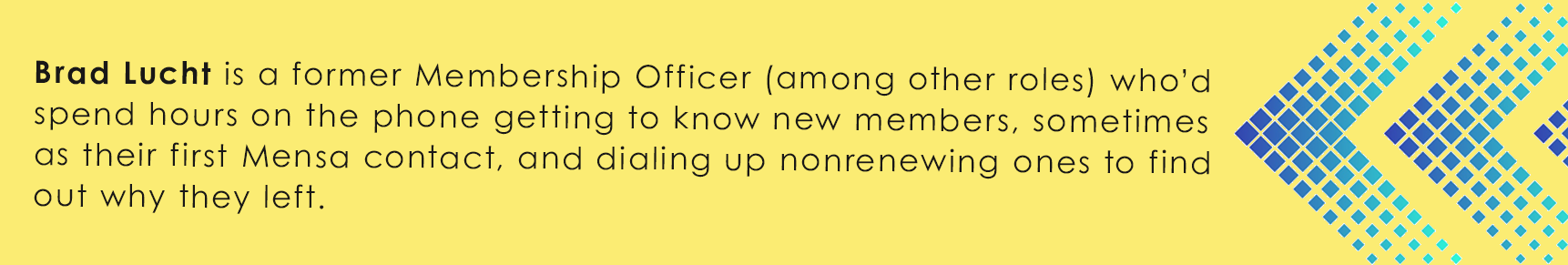 None of this happens without the terrific volunteers who notify members on Mensa Connect about upcoming talks: Michael Kravec, Mark Cohen, Alan Baltis, Alison Brown, Linda Schreiber, Martha Confray, Jess Pettitt, Tim Bentley, Bill Horton, and Lily Noonan. Their posting helps keep members informed across many chapters, and we also thank the chapter newsletter editors who share these announcements with their members. We always need more volunteers to post, and it takes only about 5 minutes. If you’d like to help, please contact us.